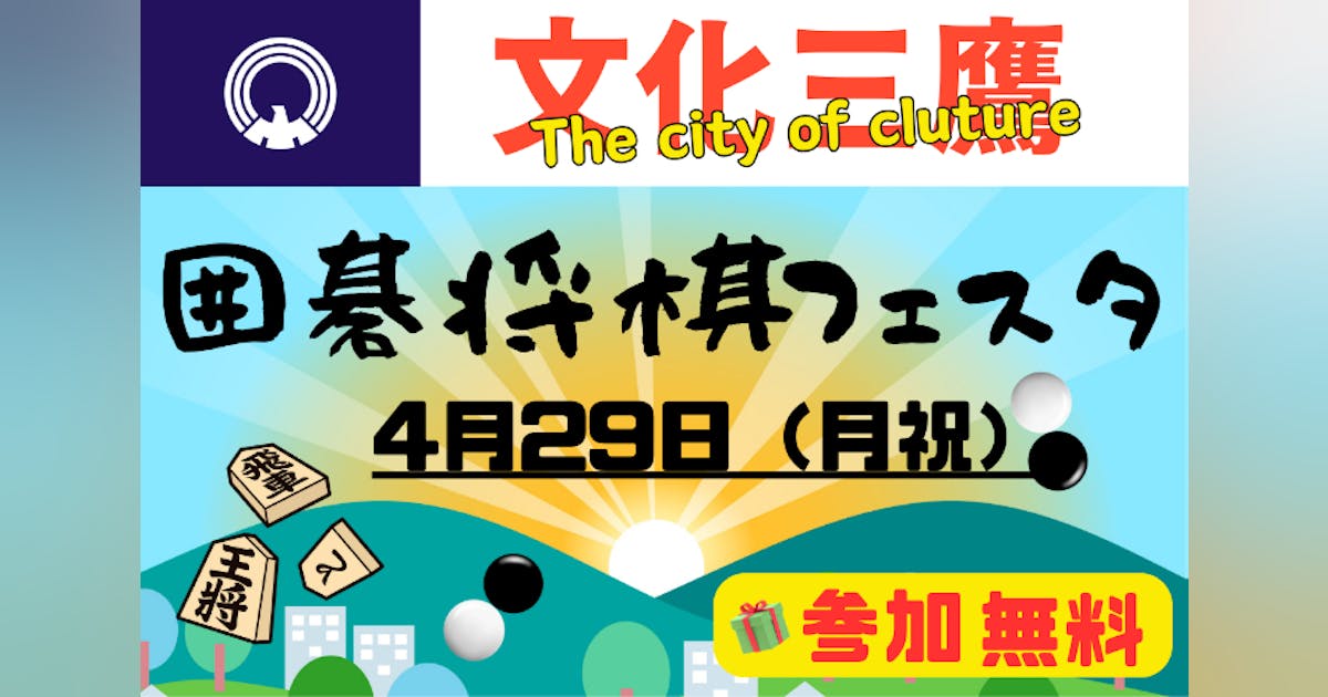 文化の街、三鷹市の後援を頂きまして「三鷹囲碁・将棋フェスタ」を開催する運びとなりました。